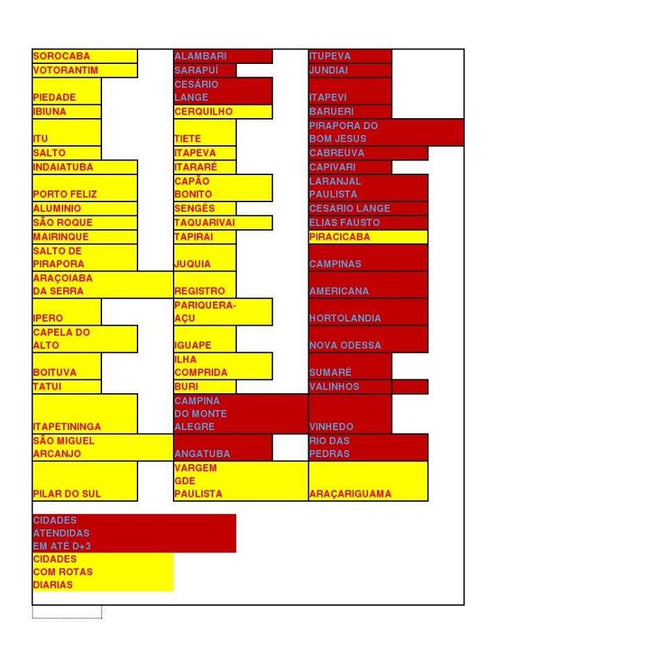 Na tabela ao lado segue as informações das cidades que atuamente atendemos e seus devidos prazos.